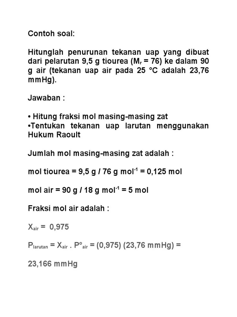 Contoh soal penurunan tekanan uap : contoh soal tekanan uap. Contoh soal penurunan tekanan uap :